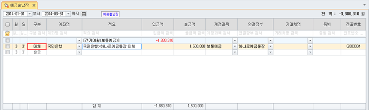 · ÀüÇ¥¿¡¼ ºÒ·¯¿Ã ¶§: ÀϹÝÀüÇ¥ ¹× ¸ÅÀÔ¸ÅÃâÀüÇ¥¿¡¼ °áÁ¦ÀåºÎ·Î ¿¹±ÝÀÇ °èÁ°¡ ¼±Åà µÇ¾îÁø °æ¿ì È®Àε˴ϴÙ.