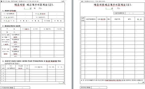 Á¶È¸ÇÑ ¸ÅÃâóº° °è»ê¼ ÇÕ°èÇ¥¸¦ ¾ç½Ä¿¡ ¸Â°Ô Ãâ·ÂÇÕ´Ï´Ù. Çʿ信 µû¶ó ºÎ°¡°¡Ä¡¼¼ ½Å°í ½Ã ÇØ´ç ¼·ù¸¦ ÷ºÎÇÏ¿© Á¦ÃâÇÏ½Ç ¼ö ÀÖ½À´Ï´Ù.