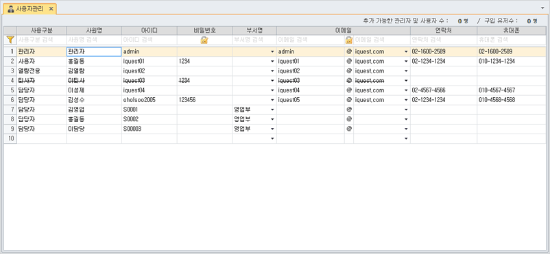 영업담당자 지정시 사용하는 담당자(프로그램 로그인 불가) |