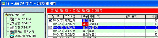 물류담당자의 품목 입출고 입력을 좀 더 쉽게 입력할 수 있도록 화면을 구성하고 회계담당자가 입력하는 [입출내역관리]와 구분하여 관리하기 위해 별도로 [물류내역관리]화면을 둔 것이다.